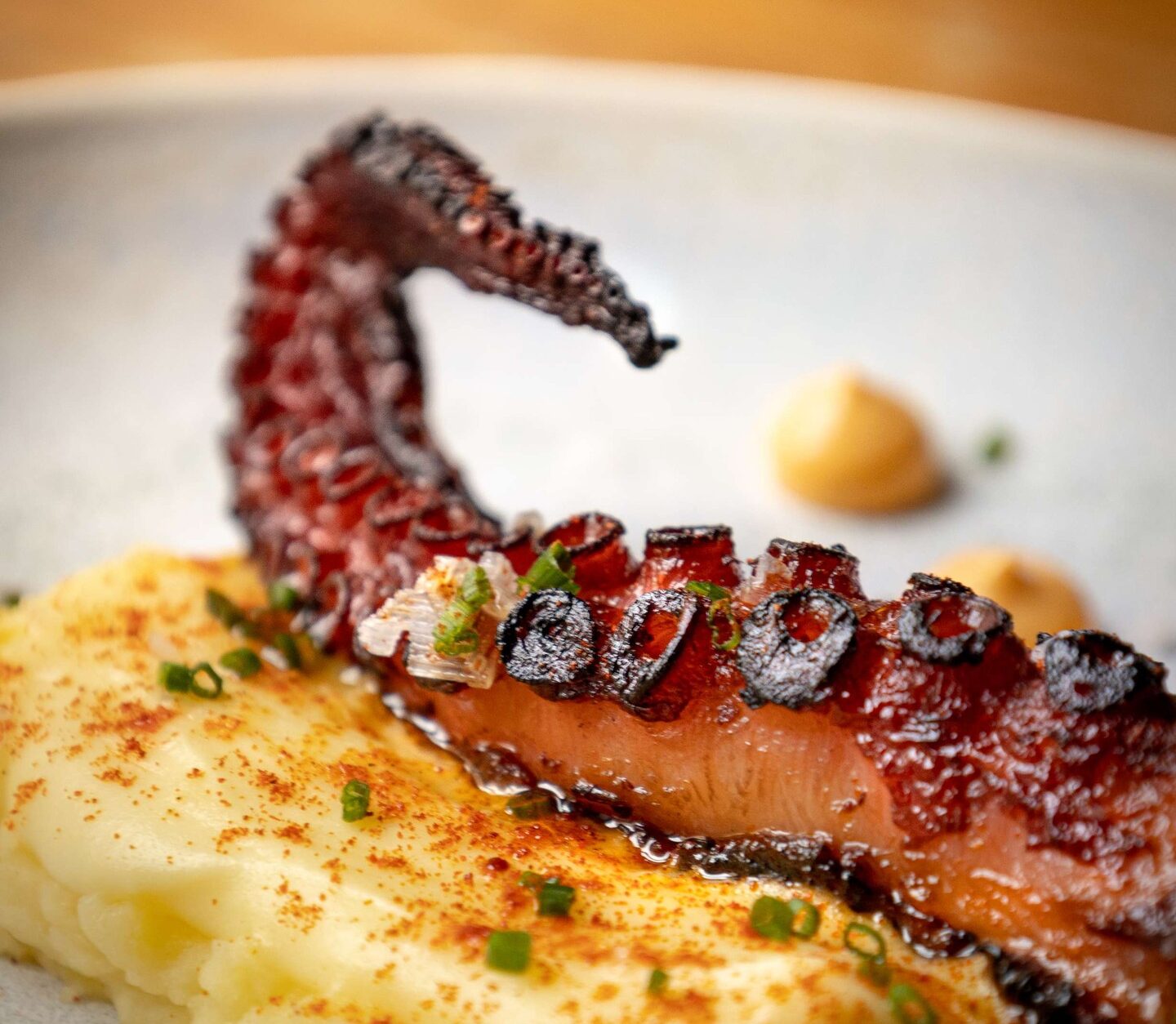 En la carta destacan platos como el pulpo a la parrilla, las carrilleras de ibérico, el arroz negro o el steak tartar.