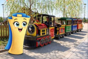 El tren del parque es uno de los momentos favoritos de las familias. Durante unos 45 minutos, Teodora la Locomotora recorre el parque mientras va contando, de forma divertida, qué monumentos aparecen y de dónde vienen.
