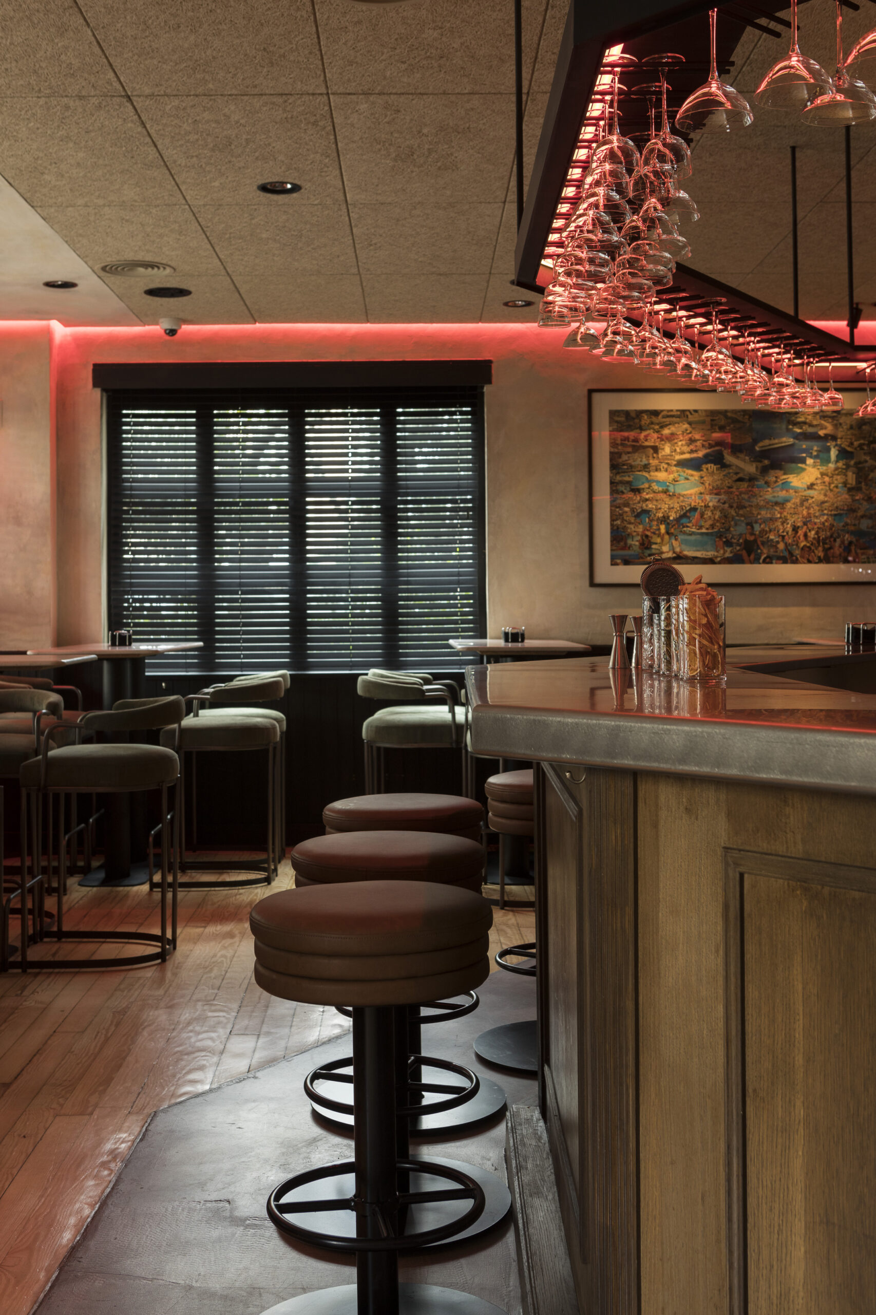 Este bar desarrolla una mirada contemporánea hacia la tradición, defendiendo la sencillez bien hecha como eje de su propuesta. El espacio combina una barra circular donde la coctelería adquiere protagonismo con un ambiente cuidado al detalle, desde la iluminación modulada hasta los guiños visuales que evocan una estética analógica y cálida. Su carta líquida, amplia y pensada para todos los perfiles, destaca por versiones precisas de clásicos, mezclas frutales y preparaciones que equilibran frescura y carácter. La comida acompaña con bocados ejecutados al momento, desde ensaladillas y croquetas hasta brioches, mini cocas o montaditos que mantienen un espíritu de bar actual. El resultado es un lugar versátil y cómodo, concebido para socializar y disfrutar de una experiencia de barra constante a cualquier hora del día.