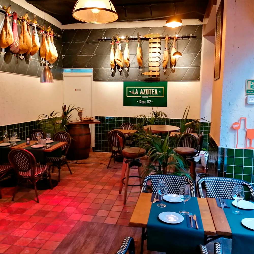 Situado entre El Corte Inglés y el Wizink Center, queríamos crear un espacio en el que se aunara nuestra tradición gastro-cultural junto con un toque fresco y actual. Junto con nuestro asesor Florencio Sanchidrián, Embajador Mundial del Jamón Ibérico, hemos creado una carta basada en el producto nacional de alta calidad. Sus tres espacios, no te dejarán indiferente: Cuenta con un exclusiva azotea en la parte superior en la que disfrutará de un ambiente muy íntimo (solo se acepta una reserva diaria). En la planta baja encontrará la barra y la sala principal cuya variedad y calidad te sorprenderá, ¡que ambiente más cálido y acogedor! Nuestra terraza a pie de calle de más de 200 metros te encantará: perfecta para el aperitivo, picar algo, comer, tomar unas copas…