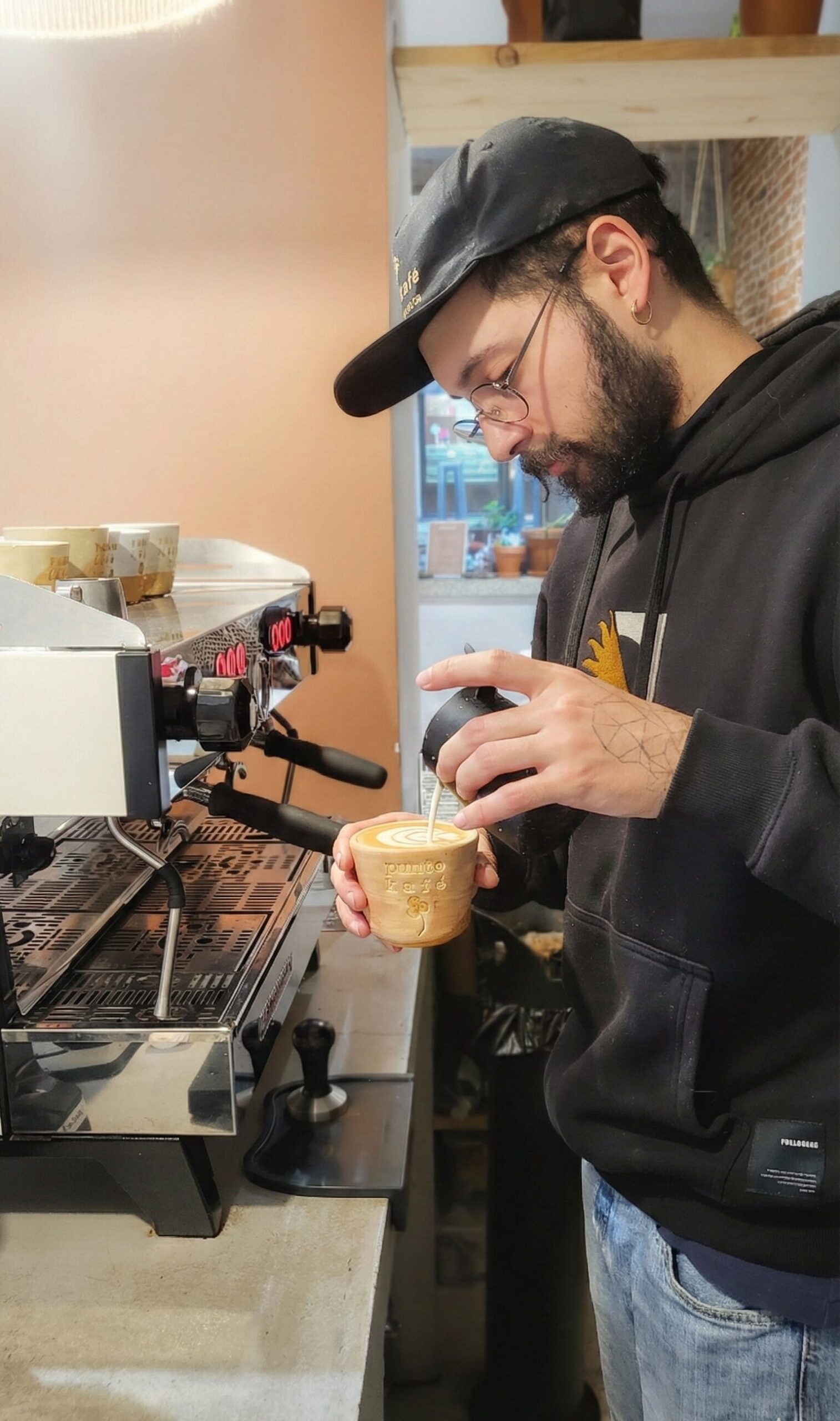 Combina café de especialidad con una cocina consciente que busca crear un momento de calma a través de elaboraciones caseras y cuidadas. Los granos, seleccionados por su alta puntuación, se preparan en métodos como V60, espresso o batch y se sirven en vajilla artesanal que refuerza la experiencia. El espacio, de tonos neutros y materiales naturales, acompaña una carta con pastelería sin gluten ni lactosa y platos pensados para nutrir con sencillez y equilibrio.