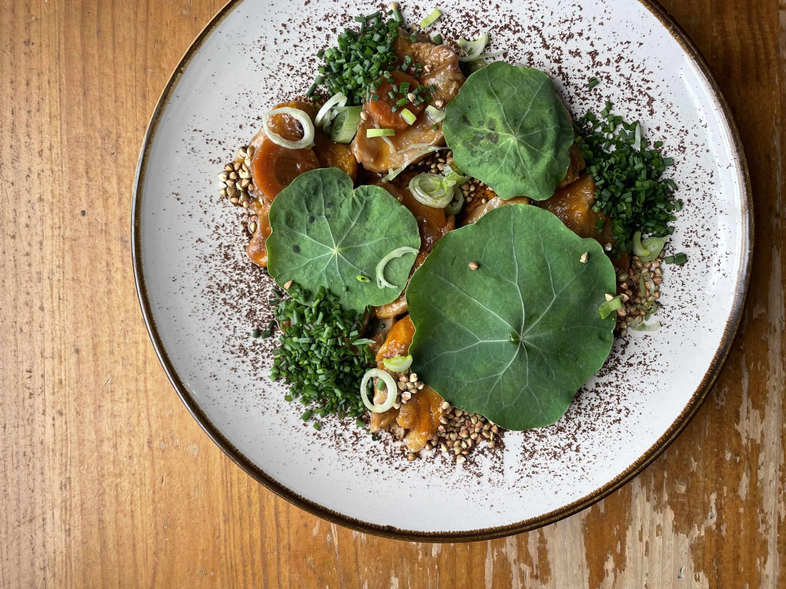 En este restaurante creen en el concepto de slow food (comer sin prisas), y los procesos respetuosos con el medio ambiente; de ahí, que utilicen alimentos que proceden de cultivos ecológicos, de proveedores locales y tengan vinos naturales en la carta. Como sugerencia, te recomendamos que pruebes sus escabeches y la tabla de quesos de los productores de la zona. Entre los platos del restaurante hay opciones vegetarianas, veganas y prácticamente todos son libres de gluten, porque quieren que todo el mundo pueda disfrutar de ellos.